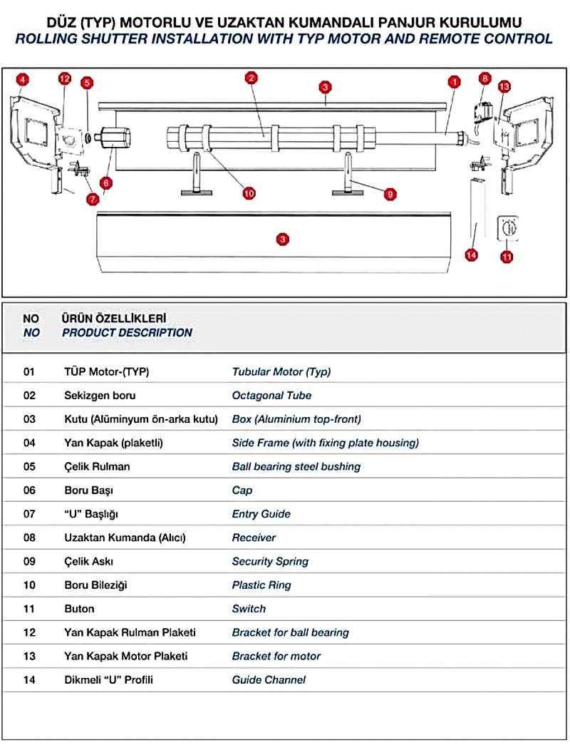 10)düz (typ) motorlu ve uzaktan kumandalı panjur kurulumu