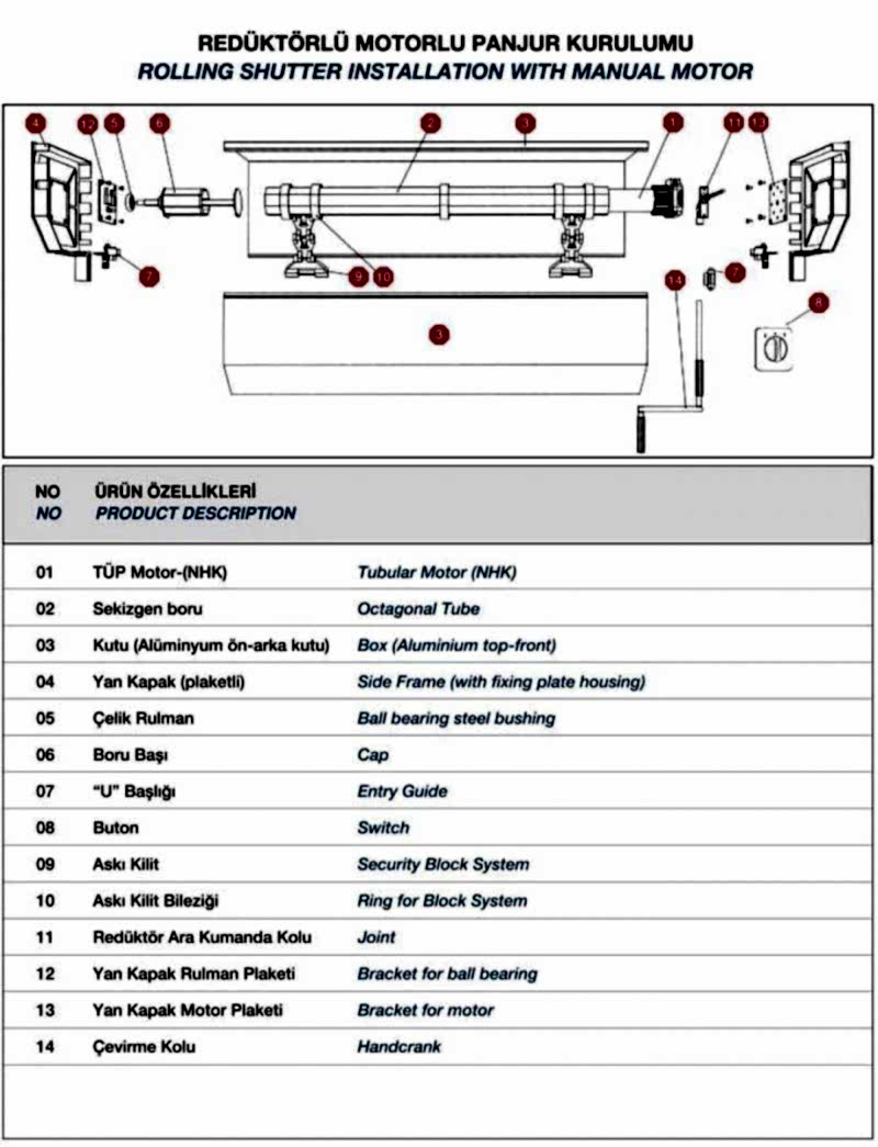 13)redüktör mekanizmalı (manuel) panjur kurulumu