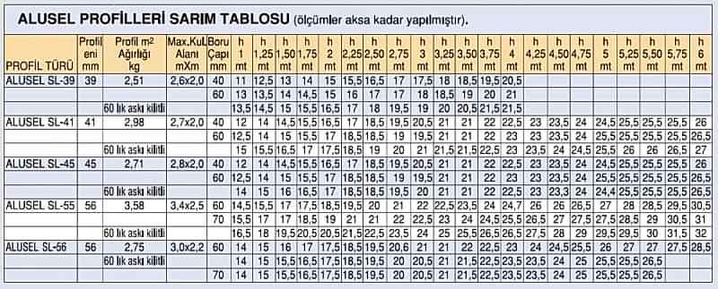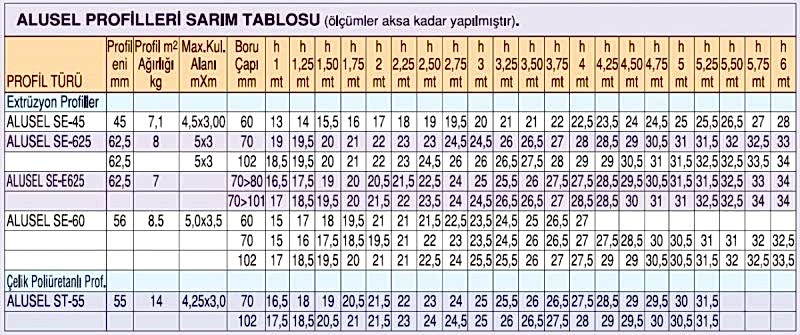 14)alüminyum poliüretan dolgulu panjur profilleri sarım tablosu